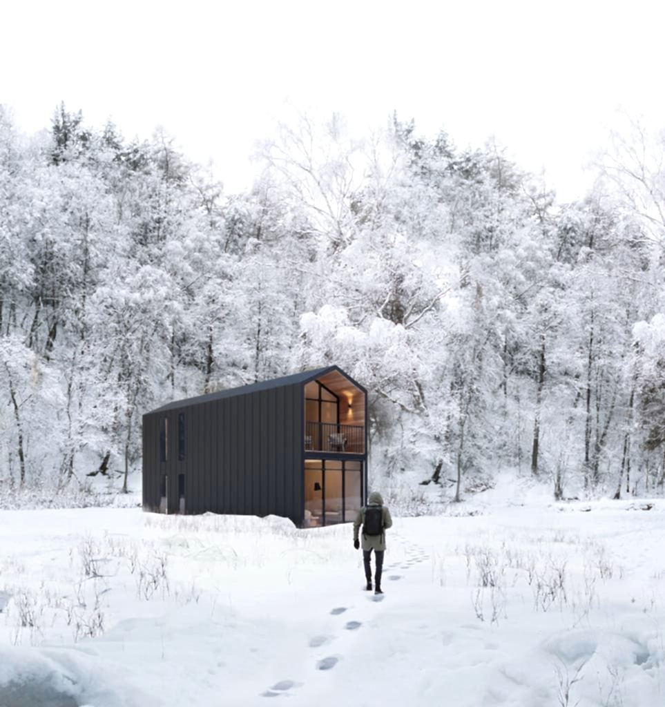 2. Kat ve farklı yaşam alanları sunan modern tarz bir ev.